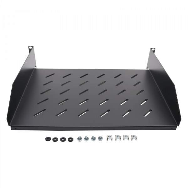 Tray for 19** rack cabinets and 350mm depth. The tray has a height of 2U. This type of tray is placed in the rack to be able to place devices that are not prepared to be racked in the cabinet, such as routers, laptops, keyboards.