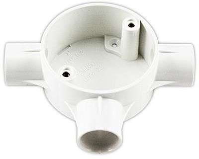 The 25mm 3-Way Circular Junction Box is a practical and versatile component designed for connecting and managing electrical cables in various settings. With a nominal diameter of 25 mm, this junction box is ideal for handling small to medium-sized cable runs and facilitating secure electrical connections.