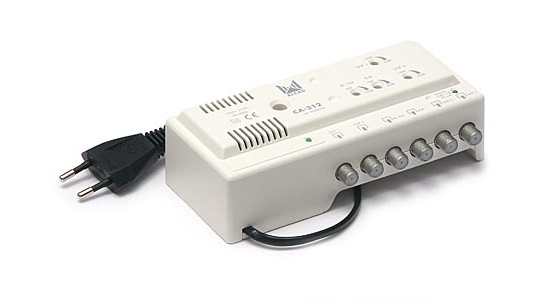 The CA-312 amplifier is used to amplify and distribute TV and FM radio signals. It is a brand-name device designed for the use in small and medium size community installations.