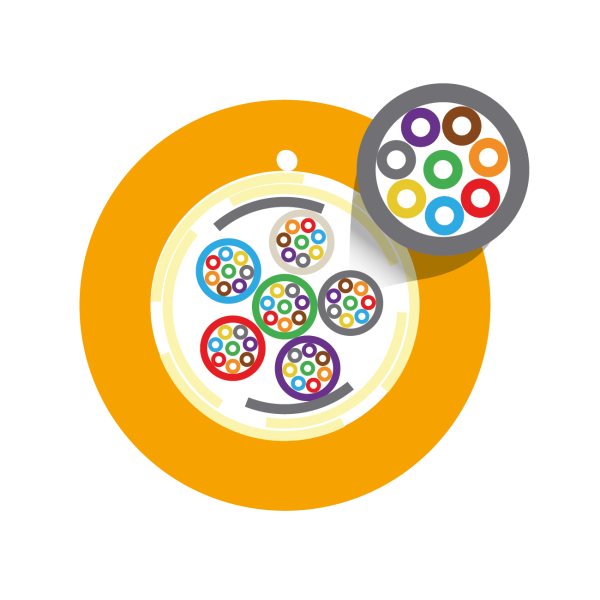 48 single-mode multi-fiber cable for indoor and outdoor installation, divided into 6 micromodules of**8 fibers, each with a UV resistant LSFH cover and with different colors.