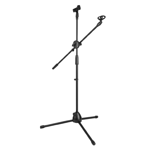 A SECURE Tripod boom microphone stand that holds up to 2 microphones securely in place.
