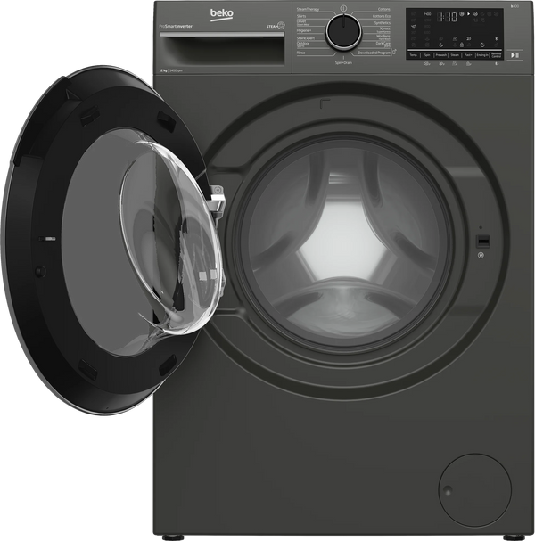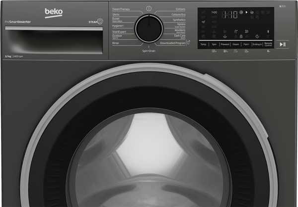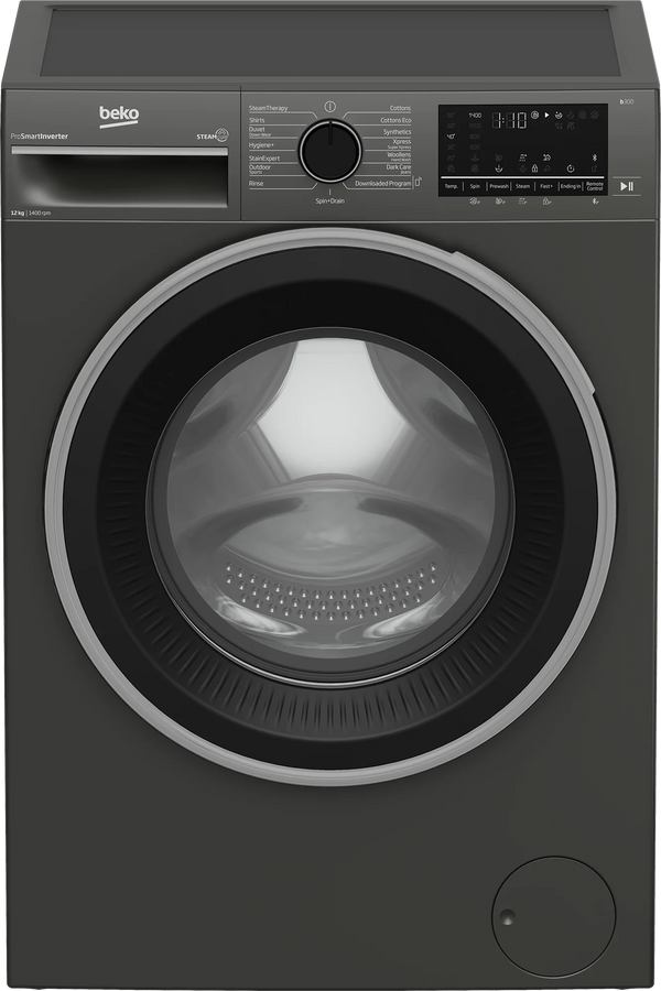 Beko 12kg B3WFT51242MG Front Load Washing Machine Key Features: 12kg Washing Capacity Net Dimensions: 60cm(W) x 67cm(D) x 84cm(H) 1,400 rpm Spin Speed Energy Efficiency Class: 10% More Efficient Than A+++ Energy efficiency class;10% more effective than A+++ ProSmart Inverter™ Motor Steamcure with Refreshment Display type;Digital screen Color;Manhattan gray Installation type;Free standing 15 Programs