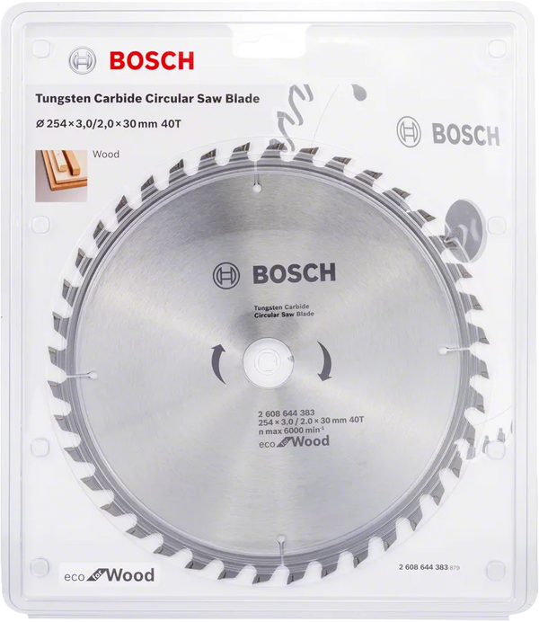 Bosch 60T ECO for Wood Circular Saw Blades 184 mm x 2.2/1.4 mm x 20 mm Key Features No of teeth: 60 Dimensions: 184mm x 2.2/1.4mm x 20mm Fully ground teeth for smooth and effortless cutting Well-selected teeth provide a good lifetime Bore works with or without reduction rings to fit different sizes.