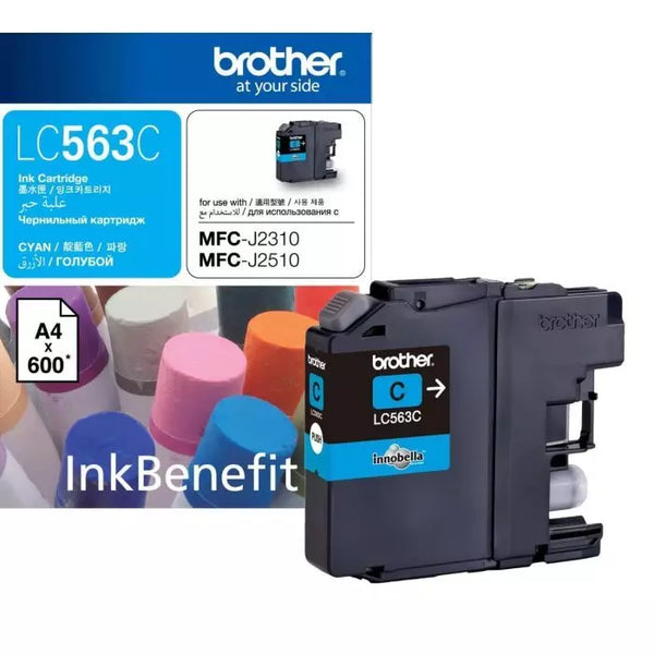 Brother LC563C Cyan Ink Cartridge Key Features; Brand: Brother. Product Code: Brother LC563C Colour: Cyan Page Yield: Approx. 600 pages Printer Model: Brother MFC-J3520, MFC-3720 What’s in the box: 1 new LC563C Cyan (600 A4 Pages) Ink Cartridge Brother