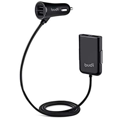 Budi 4 USB Passenger Car Charger Backseat – 12V DC Input , 5Volt Output Key Features Input:12V DC Perfect for Watching Movies On Long Road Trips. Output:5Volt/2.4Amp/36Watt Designed With a 6-foot Cable, and 4 USB Ports. Quick Charge 3.0 Charges Up to Four Times Faster than Conventional USB Charging 1 year warranty