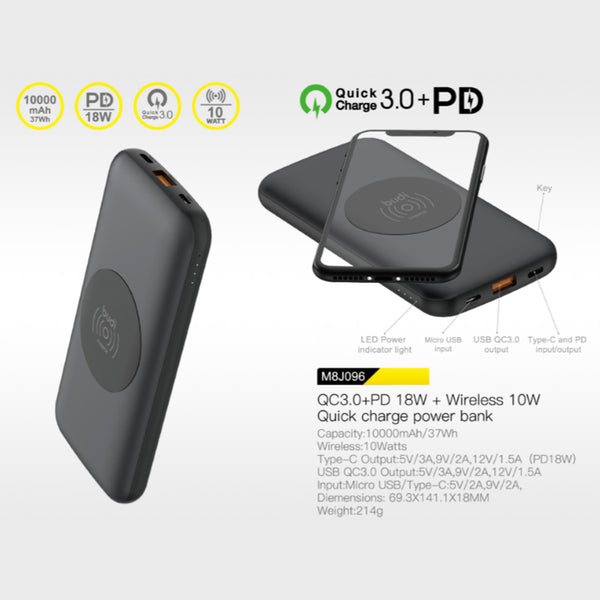 Budi Power Bank New Mini – 10000mAh Capacity , QC3.0 USB Port, For Type C , For Mobile Phones Key Features Capacity:10000mAh Type-C Output:DC5V/3.0A,DC9V/2.0A,DC12V/1.5A(PD18W) USB Output:3.6-6.5V/2.4A,6.5V-9V/2A,9-12V/1.5A(QC3.0) Input Micro USB /Type-C/9V2A,12V/1.5A 1 year warranty