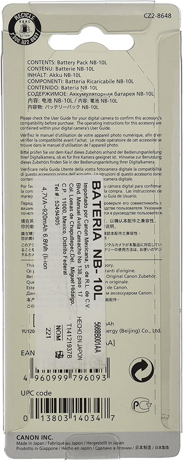 Key Features Rechargeable Lithium-Ion Battery Compatible With; SX40 HS, SX50 HS, G15, G16 G3 X