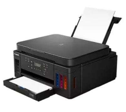 Canon Pixma G6040 printers refill ink tanks with enhanced mess-free bottles, with its productive uptime of about 350-sheet plain paper capacity and print up to 18,000 pages from 3 bottles of black ink or 7,700 pages from a color ink set, keeping the quality with a low cost-per-page.