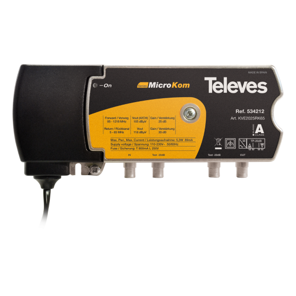 CATV Line Amplifier 1 Input/1 Output 20dB/25dB Microkom by Televes