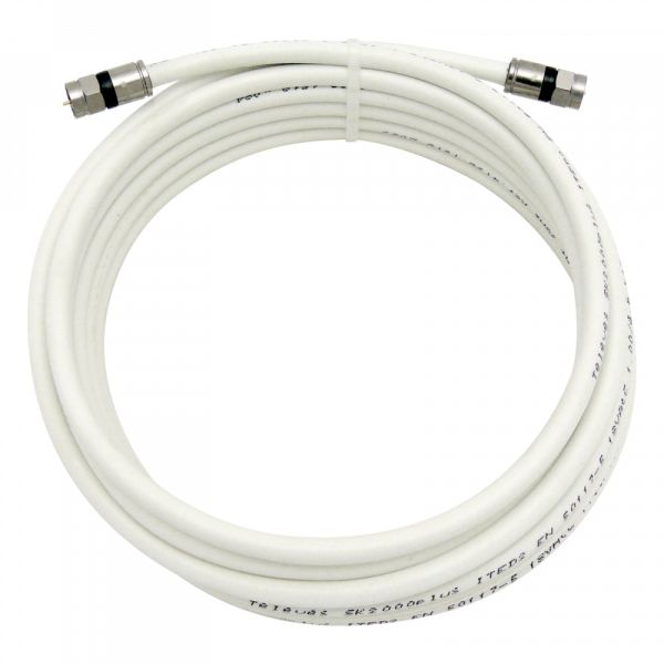 Coaxial extension cable with pre-connected male F connector. We will connect this cable between the socket and the TV device. This cable has great quality, it has triple shielding and class A++.