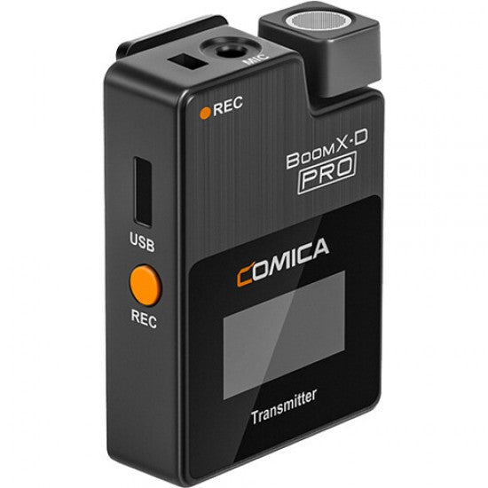 Comica Audio Boom X-D Pro D2 ultracompact 2-person digital wireless microphone system/recorder (2.4 GHz, black) Key Features Type: 2.4GHz digital wireless microphone system Range: Up to 328′ (100m) line-of-sight Power: Rechargeable battery (USB charging supported) Battery Life: 4.5h (TX), 6h (RX) Transmitter (x2) Built-in omnidirectional mic + 3.5mm input (lav mics included) 8GB storage (24h backup recording) Mute switch & -6dB safety track Receiver Dual-channel, USB & 3.5mm outputs Mono/Stereo modes Clip-on design, gain control Package Includes: 1 x Receiver 2 x Transmitters 2 x Lavalier mics 3 audio cables (TRS/TRRS) Charging cable, carry case