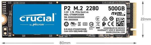Key Features 500GB Storage Capacity M.2 2280 Form Factor PCIe NVMe Gen 3 Interface Read Speeds up to 2300 MB/s Write Speeds up to 940 MB/s Micron 3D NAND