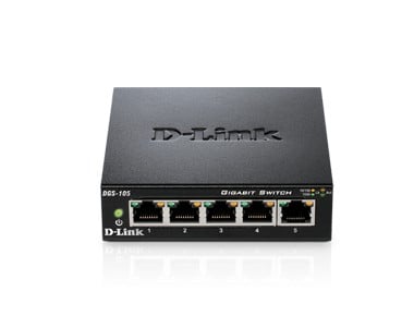 D-Link DGS-105. Switch type: Unmanaged, Switch layer: L2. Basic switching RJ-45 Ethernet ports type: Gigabit Ethernet (10/100/1000), Basic switching RJ-45 Ethernet ports quantity: 5. Full duplex. MAC address table: 2000 entries, Switching capacity: 10 Gbit/s. Networking standards: IEEE 802.1p, IEEE 802.3, IEEE 802.3ab, IEEE 802.3az, IEEE 802.3u, IEEE 802.3x. Power connector: DC-in jack