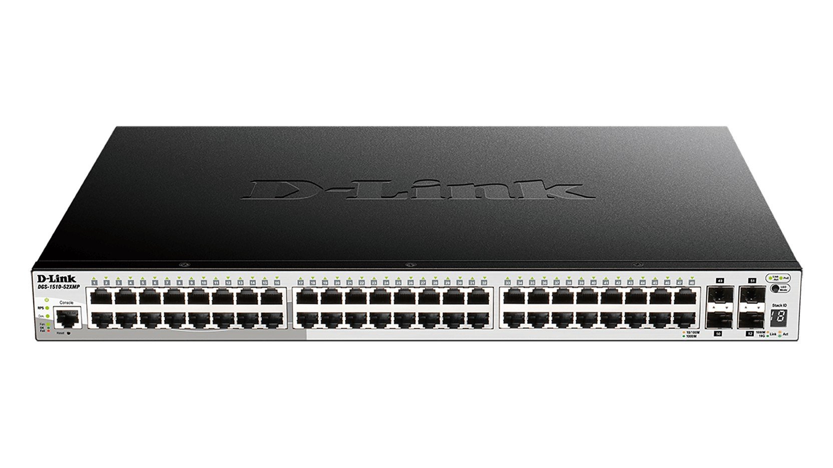 D-Link DGS-1510-20/E. Switch type: Managed, Switch layer: L2/L3. Basic switching RJ-45 Ethernet ports type: Gigabit Ethernet (10/100/1000), Basic switching RJ-45 Ethernet ports quantity: 16. Full duplex. MAC address table: 16384 entries, Switching capacity: 76 Gbit/s. Networking standards: IEEE 802.3, IEEE 802.3ab, IEEE 802.3ae, IEEE 802.3u, IEEE 802.3x. Rack mounting, Form factor: 1U