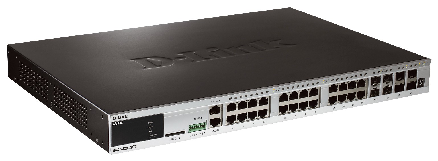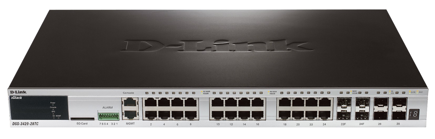 D-Link DGS-3420-28TC xStack 24-port 10/100/1000 Layer 2+ Stackable Managed Gigabit Switch including 4-port Combo 1000BaseT/SFP plus 4 10GE SFP+