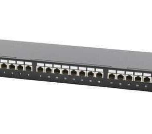 The D-Link NPP-6A1BLK242 24 Port Cat6A Patch Panel is a high-performance networking solution designed to manage and organize Ethernet connections in data centers, enterprise networks, and structured cabling environments. With 24 RJ45 ports, this patch panel supports Cat6A cables, providing reliable and fast data transmission with a bandwidth of up to 500 MHz. Its backward compatibility with Cat6 and Cat5e cables ensures versatility for various networking needs.