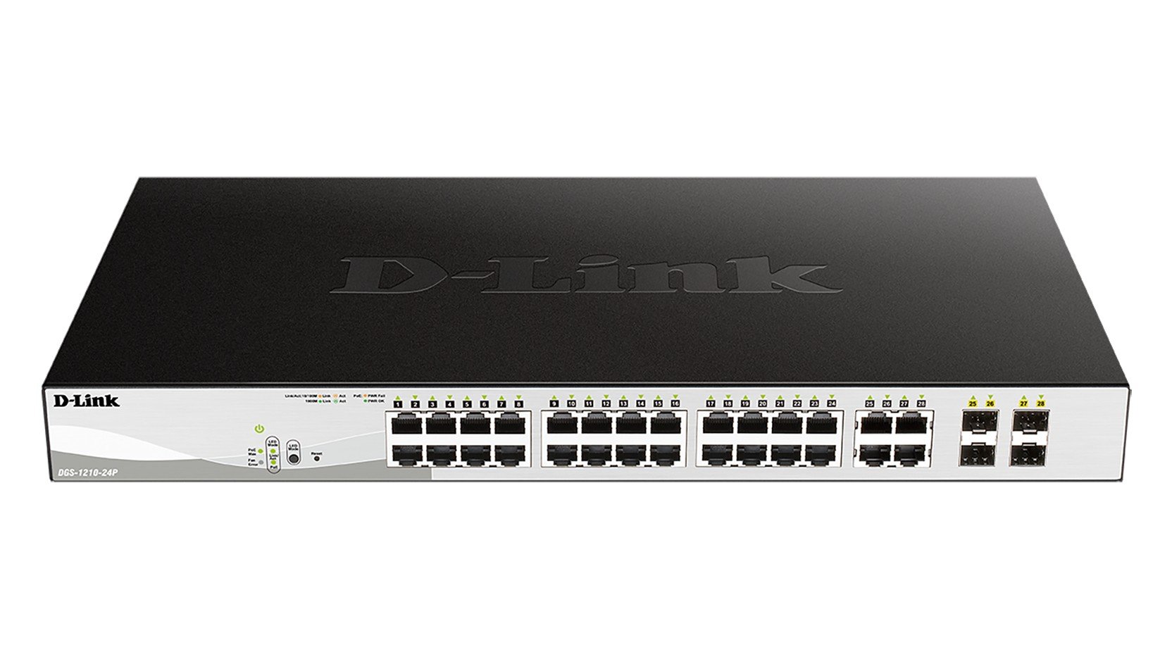 D-Link Web Smart DGS-1210-24P – Switch Managed 24 x 10/100/1000 (PoE) + 4 x combo Gigabit Ethernet/Gigabit SFP desktop rack-mountable PoE (193 W) (DGS-1210-24P)