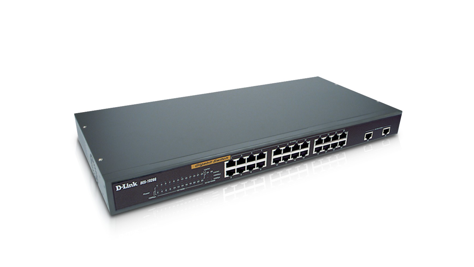 D-Link DES-1026G. Switch type: Unmanaged, Switch layer: L2. Basic switching RJ-45 Ethernet ports quantity: 26. Full duplex. MAC address table: 8000 entries, Switching capacity: 8.8 Gbit/s. Networking standards: IEEE 802.1p, IEEE 802.3, IEEE 802.3ab, IEEE 802.3u, IEEE 802.3x. Rack mounting