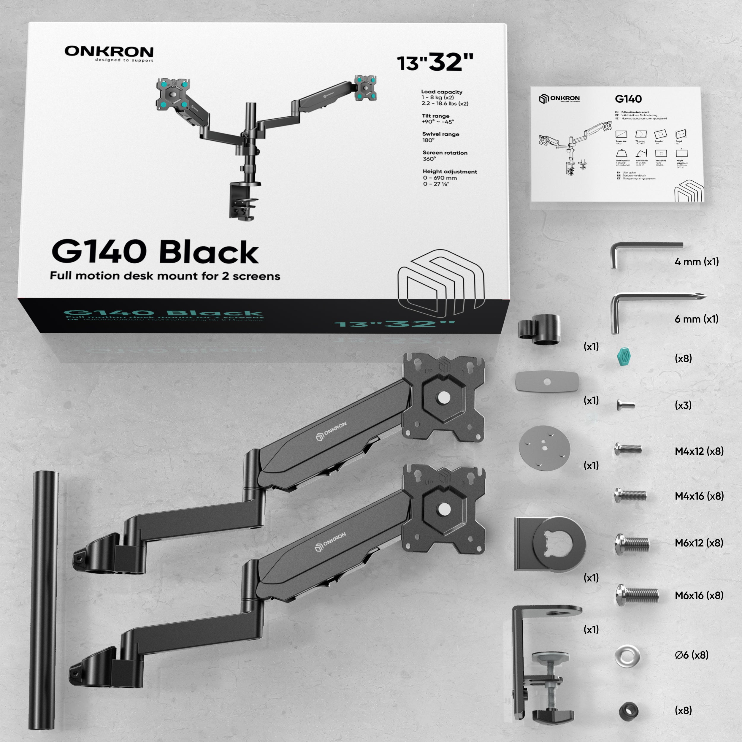 Desk Mount for Three Monitors 13″-32″ max 18 lbs, Tilt-Swivel, with Rotation, Black G140