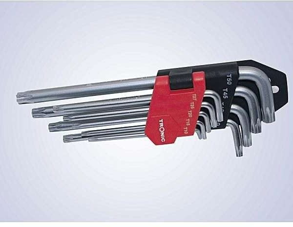 Tronic Double Ring Allen Key HT HK19 is an L-shaped metal bar with a hexagonal head at each end, used to turn bolts and screws having hexagonal sockets. Tronic double-ring hex key available in sizes T10 to T50.