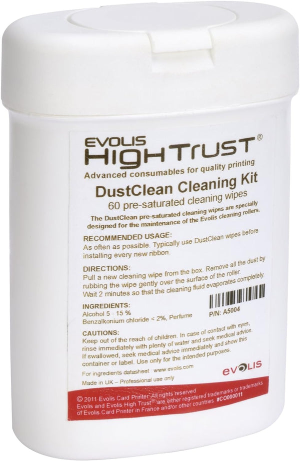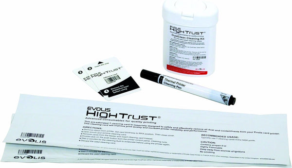 Evolis ACL002 Advanced Cleaning Kit Key Features: Premium quality products Ease of use For Evolis Zenius Card Printers A technology design to make printing tasks simple for the user A key enabler in maximizing the lifespan of an Evolis printer A limited environmental impact from both a manufacturing and distribution standpoint. Contains 2 pre-saturated “T” cards, 2 adhesive cards, 1 pen, 1 dispenser of 60 pre-saturated cleaning lint-free wipes.