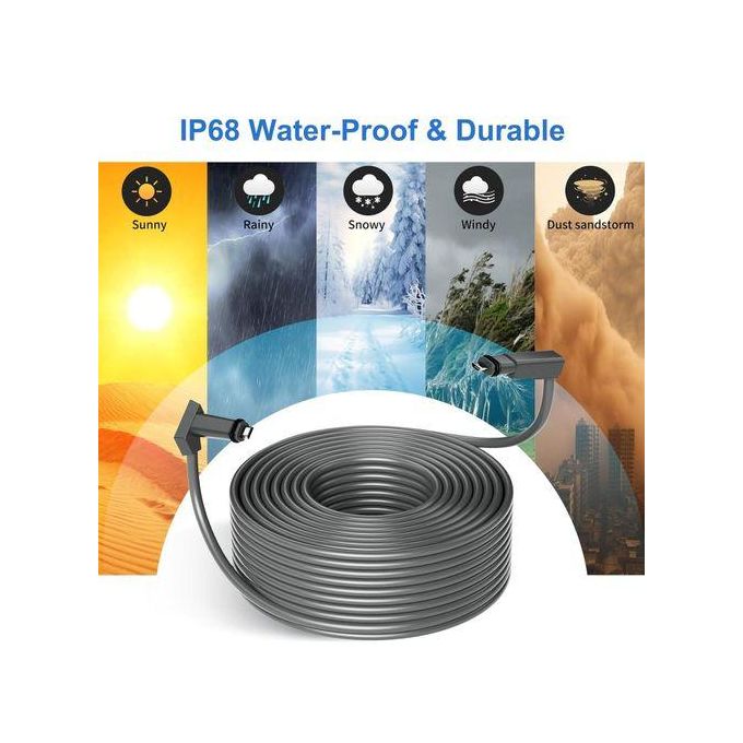 Strong and durable The replacement cable has a waterproof and rainproof, snow-resistant design, making it suitable both in- and outdoors and in adverse weather conditions. Note: If necessary, please take protective measures to prevent the network cable from being bitten by animals or damaged by other accidents.