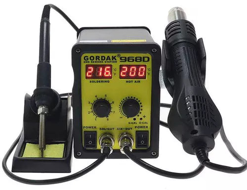Gordak 968D Hot Air SMD Soldering Rework Station Key Feaures 500 Watts Durable and Practical Material: Metal Temperature Control: Internal Temperature Type: Internal Heating Suitable For Electronic Repair 1 Year Warranty