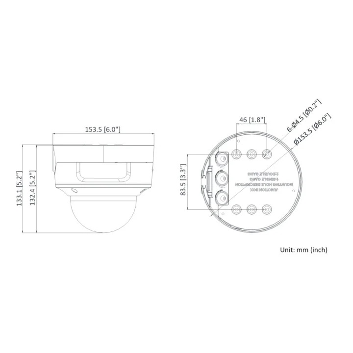The device is housed in a dome casing, designed for both indoor and outdoor