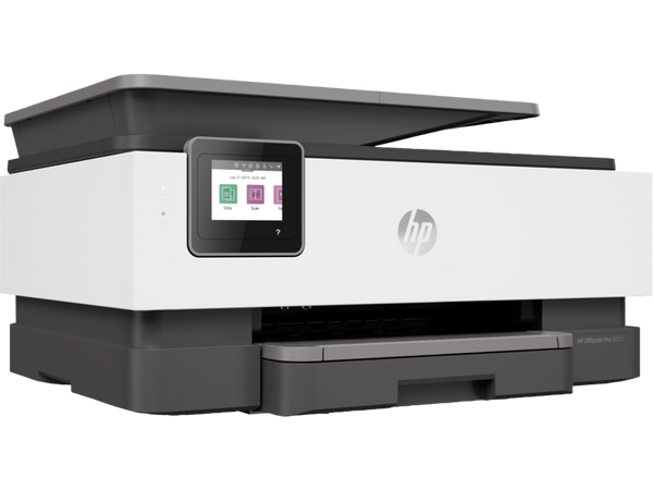 HP OfficeJet Pro 8023 All-in-One Printer – Maximum Resolution 4800*11200DPI, Colour scanning, Colour faxing Key features; Functions: Print, copy, scan, fax Print technology: HP Thermal Inkjet Duplex printing: Automatic (standard) Duty cycle (monthly, letter): Up to 20,000 pages Recommended monthly page volume: Up to 800 pages Copy Speed Black (maximum, A4): Up to 29 CPM Scanner type: Flatbed, 1-sided ADF Print quality black: 1200 x 1200 rendered dpi Fax Transmission Speed: 4 sec per page Fax Resolution Black: Up to 300 x 300 dpi Connectivity, standard: 1 USB 2.0; 1 Ethernet; 1 Wireless 802.11 a/b/g/n; 1 RJ-11 Fax