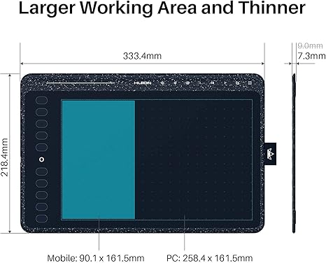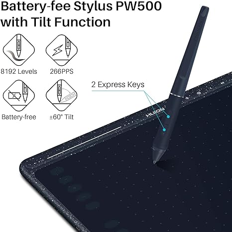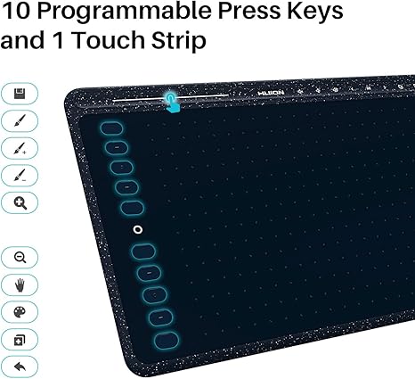 Huion HS611 Graphic Drawing Tablet (10 x 6.25 inches) Key features: 8 multimedia keys bring more fun to you Three colours : Coral Red, Starry Blue and Space Grey Slim and easy-to-carry with 7.3mm of thickness >233PPS report rate 8192 pressure sensitivity levels ±60°tilt support 10 programmable press keys + 1 programmable touch bar OS support: Windows/macOS/Android