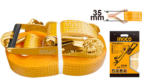 Ingco HRSP2101 Ratchet Straps 2T Key Features: Load Capacity: 2T Length: 10m Width: 35mm Features: With Ratchet With Double J Hooks Packaging: Packed by Strap
