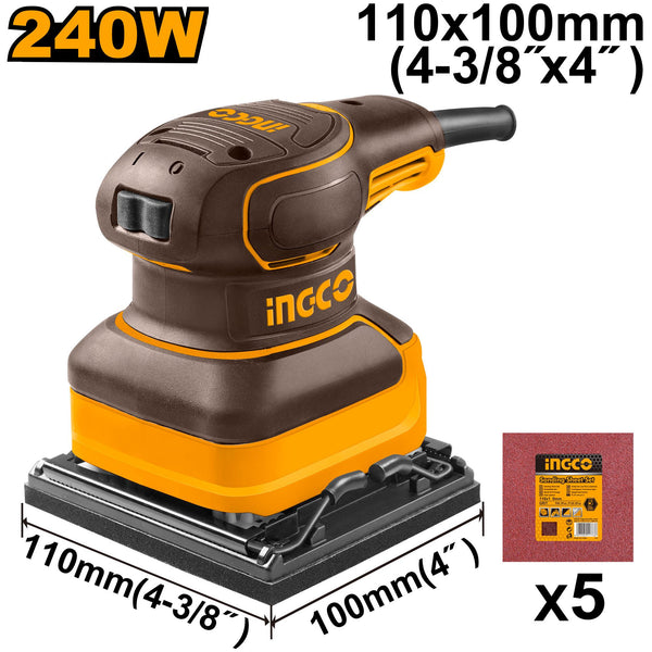 Ingco PS2416 Palm Sander Key Features: Voltage: 220-240V~50/60Hz Input Power: 240W No-Load Speed: 14,000rpm