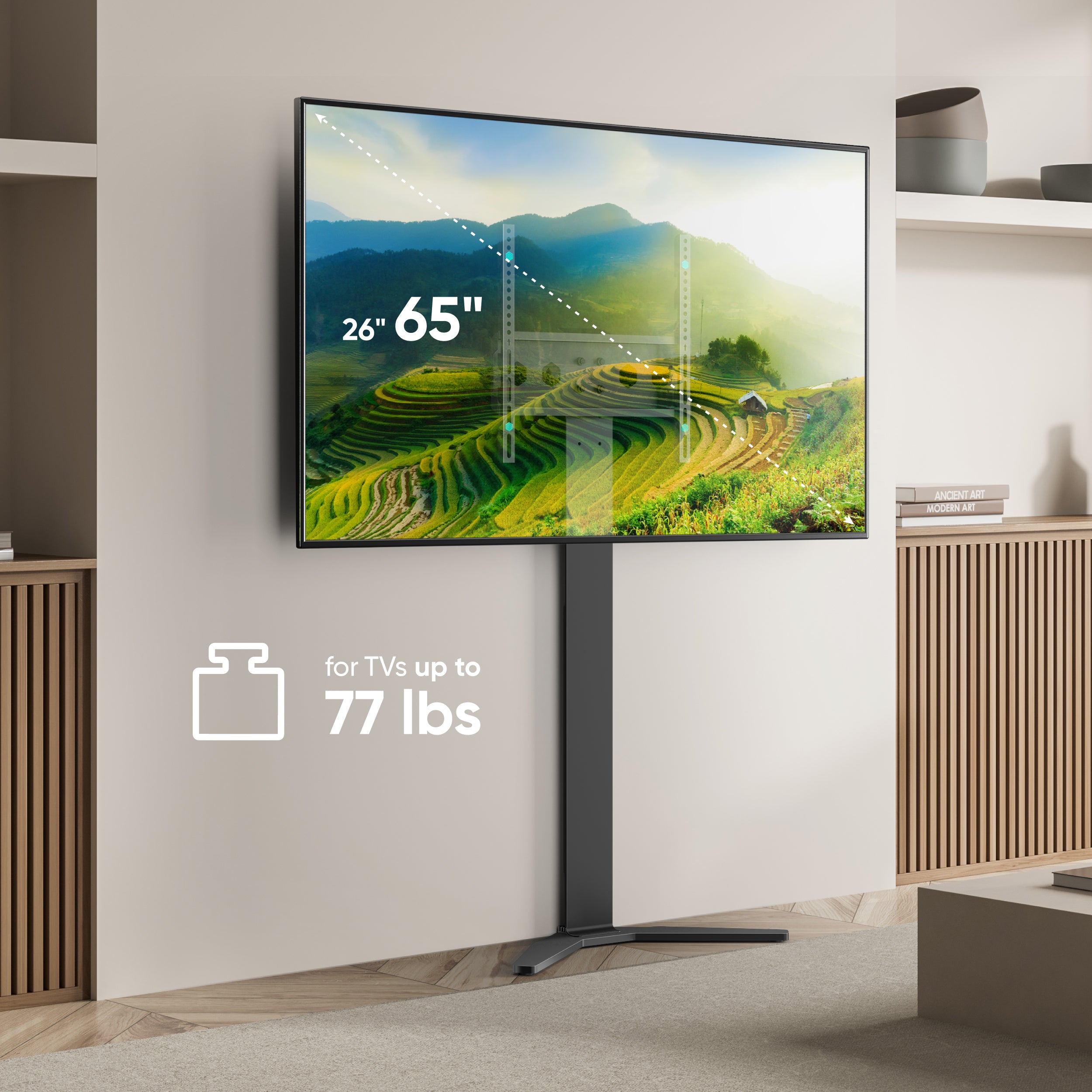 Interior TV stand 26″-65″, max 77 lbs, black TS1140