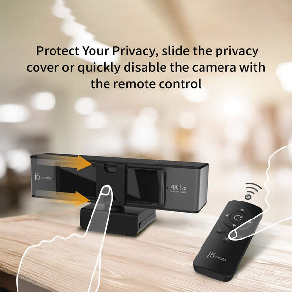 j5create 4K ULTRA HD Webcam with 5x Digital Zoom Remote Control, Low Light Enhancement, Dual High-Fidelity Microphones for Video Conferencing, Online Classes and Live Streaming – JVCU435 Features Built-in low light enhancement (ultra-low illumination 0.05 lux, F/1.6 aperture lens) Includes remote control for 5x digital zoom & ePTZ functionality Built-in high-fidelity dual microphones Privacy cover Supports H.264 and MJPEG image formats Maximum support 4K/30 FPS & 1080P/30 FPS image resolution High definition 4K image sensor with up to 8 MP capture Compliant with standard UVC 1.0/1.1/1.5 & UAC protocol, driver-free USB™ plug-and-play (Compliant with USB™ 2.0 / USB™ 3.0, 500 mA) Wide Compatibility: Zoom™, Facebook™ Messenger, Skype™, Microsoft Teams™