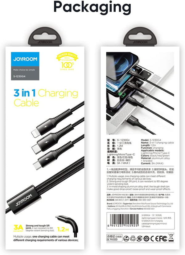 Joyroom 3 in 1 (Lightning + Type-C + Micro USB) Fast Charging and Data Cable 1.2M – S-1230G4 – Kenya