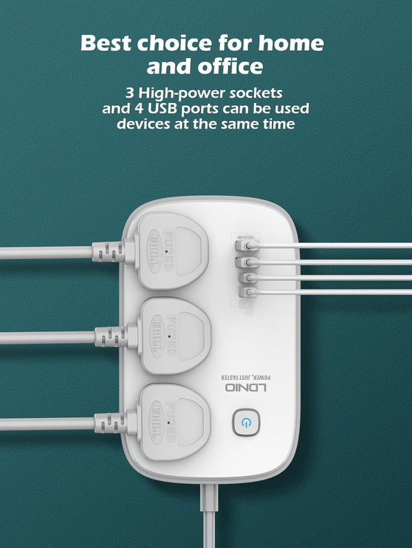 LDNIO SC3416 Universal Socket with 3 AC Outlets, Single Switch Control Extension with 4 USB 3250W Power Strip with 2M Cable – Kenya