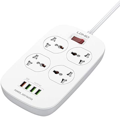 Ldnio Smart 2500W Power Extension with 4 Power Sockets and 18W USB Ports -Defender Series Power Strip with QC USB Port Fast Charging – 2M Power Cord – SC4407 – Kenya