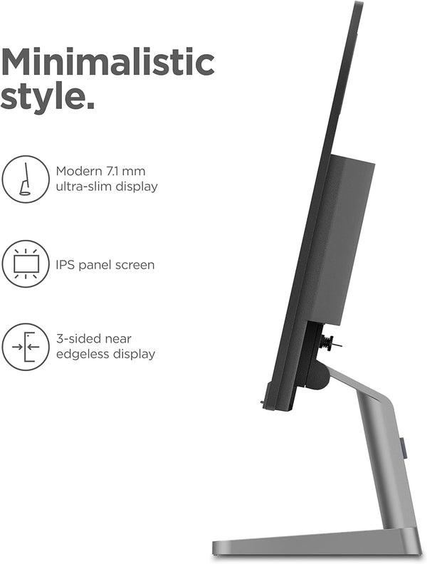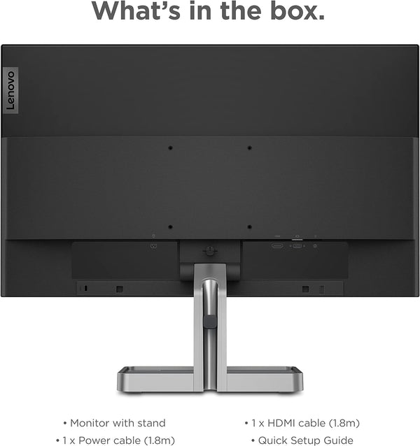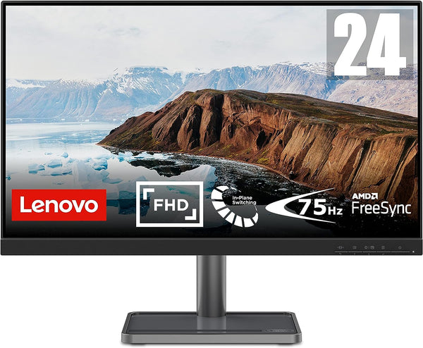 Lenovo L24i-30 23.8 inch Monitor (66BDKAC2UK) Key Features: TAKING MINIMALISM TO THE MAX: With its brand-new minimal styling, Lenovo L24i-30’s modern 7.1 mm ultra-slim display looks as good in any home as the images it displays on its In-Plane Switching panel screen. A screen that floats above its newly upgraded two-tone metal wedge pedestal that’s engineered for elegance, stability and convenience because it tidies cables invisibly away behind its slender neck and integrates a rack to neatly hold a mobile phone. KEEP WATCHING IN COMFORT: L24i-30’s In-Plane Switching panel display delivers faultless images even when it’s viewed from angles as extreme as 178°. So, watching a movie with the whole family will bring smiles as wide as the viewing angle. But whether you need to work at home, input data well into the night or get entertained, binge-watching a favorite show, this monitor safeguards users’ eyes from fatigue thanks to TÜV Rheinland Eye Comfort-certified technology that filters harmful blue wavelengths. UNINTERRUPTED CONVENIENCE: Press play. And let the movie roll or the games flow uninterrupted. L24i-30 refreshes the screen at a rate of 75 Hz and, when coupled with built-in AMD FreeSync™, it leaves image tearing and stuttering way behind in the dust while racers take the checkered flag. Plus, with Lenovo’s exclusive Artery software coming standard with the monitor, users can fine-tune its brightness, contrast and other controls to match different usage scenarios and quickly switch between them through its convenient and elegant “soft OSD” interface.