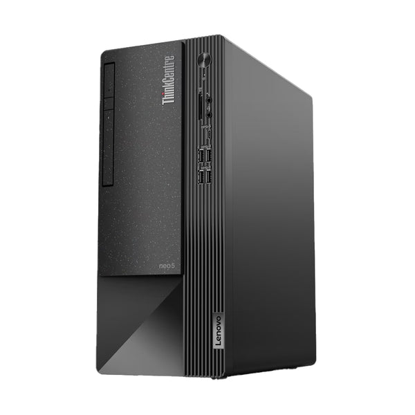 Lenovo ThinkCentre Neo 50T G3 PC Desktop Computer – Intel Core i3-12100 12th Gen, 4GB RAM, ITB HDD, DOS, No Monitor (11SE00NKGP) Key Features Operation System: FreeDOS Processor: Intel® Core™ i3-12100, 4C (4P + 0E) / 8T, P-core 3.3 / 4.3GHz, 12MB cache Graphics: Integrated Intel® UHD Graphics 730 Chipset: Intel® B660 Chipset Memory: 1x 4GB UDIMM DDR4-3200 Memory Slots: Two DDR4 UDIMM slots, dual-channel capable Max Memory: Up to 64GB DDR4-3200 Storage: 1TB HDD 7200rpm 3.5″ Storage Support: Up to two drives (1x 3.5″ HDD up to 2TB, 1x M.2 SSD up to 1TB) Card Reader: 3-in-1 Card Reader Optical Drive: DVD±RW Audio Chip: High Definition (HD) Audio, Realtek® ALC222-CG codec Speakers: 2W x 1 Design & Build: Keyboard: USB Calliope Keyboard, Black, English (UK) Mouse: USB Calliope Mouse, Black Chassis Color: Black (Chassis), Grey (Bezel) Form Factor: Tower (13.6L) Dimensions (WxDxH): 145 x 294 x 340 mm (5.71 x 11.57 x 13.39 inches) Weight: Around 5.5 kg (12.1 lbs) Connectivity: Ethernet: Intel® I219-V, 1x RJ45 Front Ports: 2x USB 3.2 Gen 1 2x USB 3.2 Gen 2 1x USB-C® 3.2 Gen 1 (supports data transfer and 5V@3A charging) 1x Headphone/microphone combo jack (3.5mm) 1x Microphone (3.5mm) Rear Ports: 1x HDMI® 1.4b 1x DisplayPort™ 1.4 1x VGA 4x USB 2.0 1x Serial (9-pin) 1x Ethernet (RJ-45) 1x Headphone (3.5mm) Expansion: Expansion Slots: 1x PCIe® 4.0 x16, full-height, half-length 2x PCIe® 3.0 x1, full-height, half-length 2x M.2 slots (1 for WLAN, 1 for SSD) Security & Manageability: Security Chip: Discrete TPM 2.0, TCG certified Physical Locks: Kensington® Security Slot™, 3 x 7 mm Chassis Intrusion Switch: None Manageability: Non-vPro® Power & Warranty: Power Supply: 180W 85% efficiency Base Warranty: 1-year, Courier or Carry-in Green Certifications: Certifications: EPEAT™ Gold/Silver TCO Certified 9.0 RoHS compliant REACH, WEEE TÜV Rheinland® Ultra Low Noise