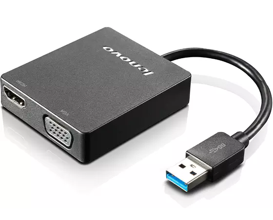 Lenovo Universal USB 3.0 to VGA/HDMI Adapter – 4X90H20061 Key Features; VGA up to 2048×1152@ 60 Hz HDMI up to 2560×1440@ 50 Hz Dual VGA and HDMI output (connect VGA first) supporting resolutions up to 2048×1152@ 60 Hz Single VGA or HDMI output Note: Connect VGA first