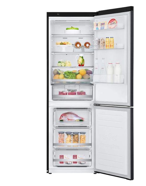 LG GC-B459NQDZ 341Liters Bottom Mount Refrigerator – Door Cooling+ [19% Fast Cooling], Smart ThinQ Key Features; Capacity: 341Liters No frost bottom-mounted freezer model Fresh converter zone (meat/fish/vegetable storage option) 3 extra-large freezer drawers ThinQ technology Inverter Linear compressor LED light in fridge compartment Express cool function Eco-friendly cooling mode Egg and ice tray provided Internal temperature control panel Large moisture control fruit and vegetable box Door cooling technology (Door cooling plus) 1 Year Warranty