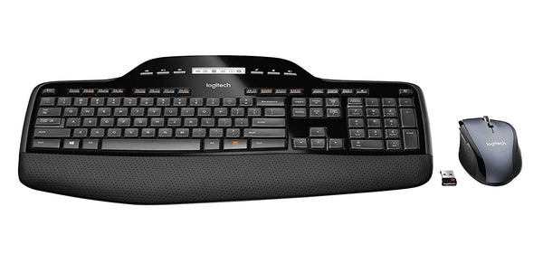 Logitech MK710 Wireless Keyboard and Mouse Combo Key Features. MK710 keyboard contains Unifying Technology and the wireless Marathon Mouse M705. AA Batteries Required (Best with Polaroid AA Batteries) Up to three years of battery life Logitech Incurve keys and cushioned palm rest help your fingers glide comfortably LCD dashboard icons gives at-a-glance status of battery power, Caps Lock, Scroll Lock and Num Lock Hyper-fast scrolling System Requirements:Windows-based PC,Windows XP, Windows Vista, Windows 7, Windows 8, Windows 10 We recommend moving the receiver away from other radio interference devices such as WIFI routers, Cordless Phones, etc. to alleviate any receiver interruption. 1 Year Warranty.
