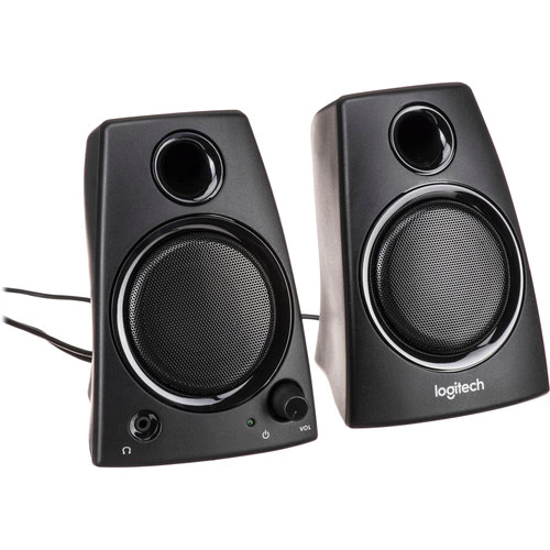 Z130 Speakers from Logitech are an affordable straightforward, easy-to setup and easy-to-use solution for your laptop or desktop audio needs. These speakers push a total of 5 watts of power and deliver clear, strong sound. Built-in to the speakers is a 3.5 mm headphone jack as well as a power and volume control knob. To get started, connect a 3.5 mm cable from the audio input jack on the back of the speakers to a 3.5 mm audio output jack on your laptop or on your desktops sound card.