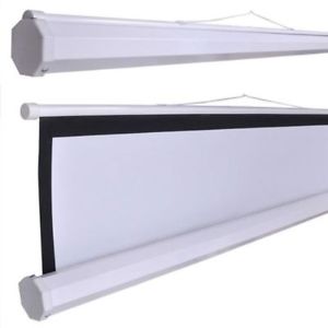 Product Description Dimensions: 120″ x 120″ Diagonal Display Format: Square Aspect Ratio: 1:1 Screen type: Manual Pull-down Screen Surface: Matte white fabric Casing: White or Black metal casing Preset stops to open or close the screen to the required level Suitable for meeting rooms, churches, classrooms. 1 Year Warranty