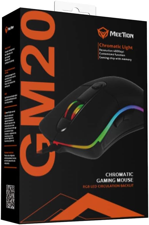 Meetion MT-GM20 Chromatic Gaming Mouse Key Features The Perfect Starter Gaming Mouse Rich With Features 4800 DPI High-Res Optical Sensor For Pinpoint Accuracy Sleek Stylish Design, Moulded To Fit The Hand For Hours Of Easy Gaming 5 Buttons, Programmable Via The Included Software Cool Chromatic RGB LED Lighting For Extra Style