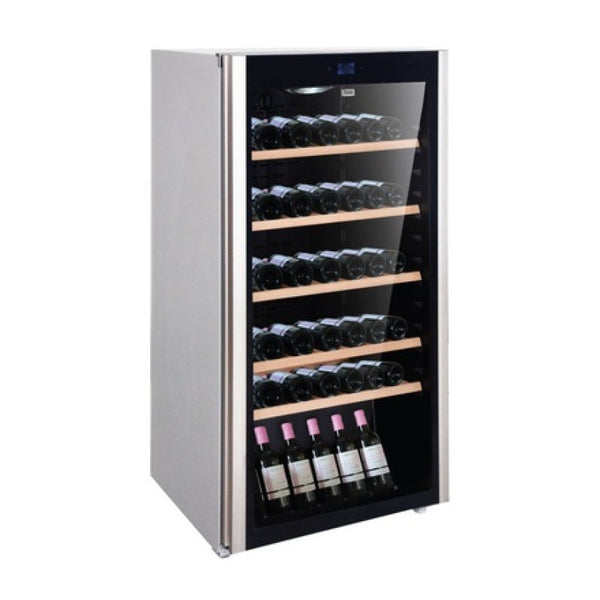 Mika MWC72 72 Bottles Wine Chiller – Intelligent touch temperature control panel Key Features; Bottle loading: 72 bottles Elegant, tough & water resistant oak shelves Intelligent touch temperature control panel Illuminating temperature display for better viewing Temperature range: 6º-18º Anti-double-coated tempered glass door Elegant-looking aluminum alloy recessed handle Wide-angle door opening Flexible, adjustable foot design for uneven surfaces 1-Year Warranty
