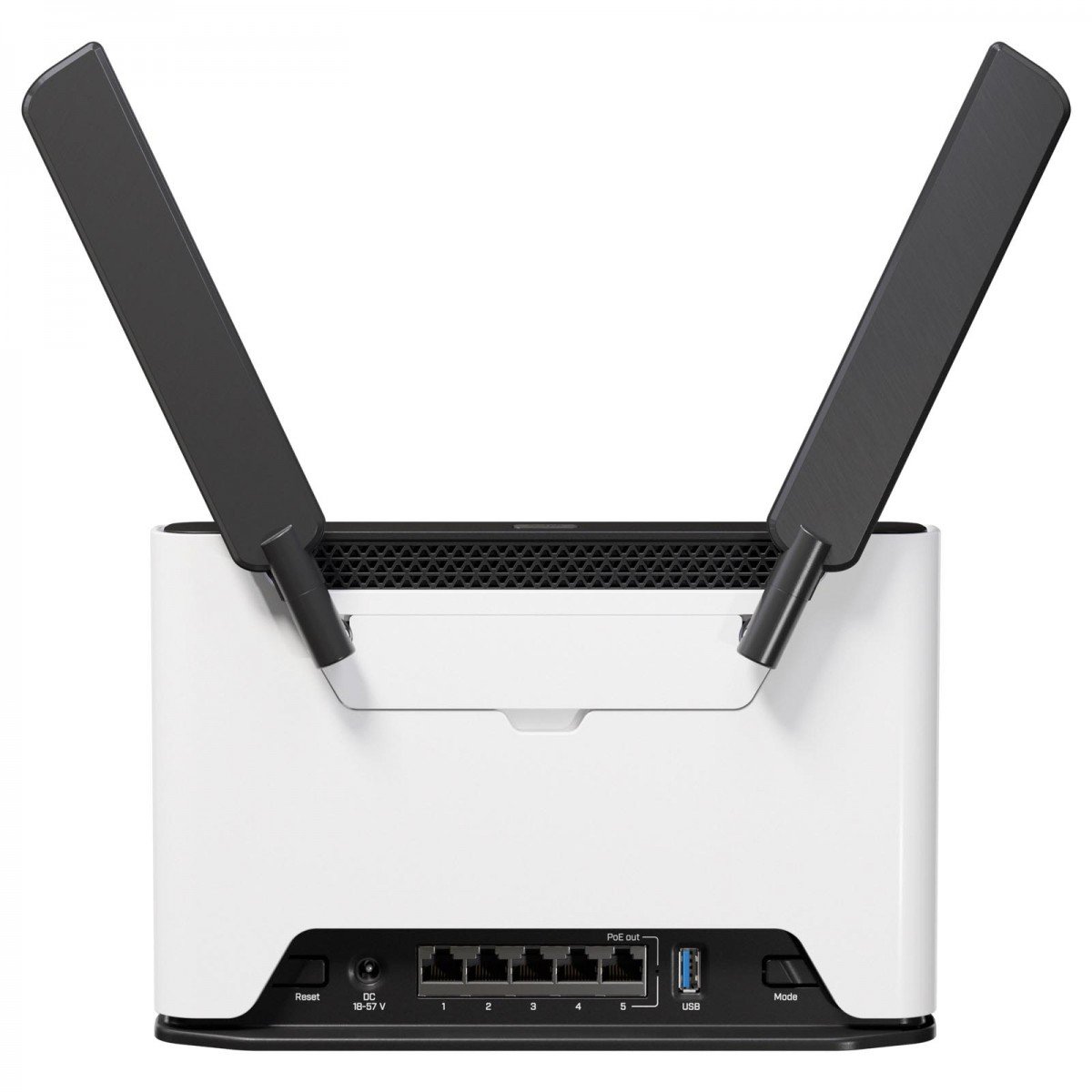 Power Supply: 18 – 57 V DC, Passive PoE on Ether5