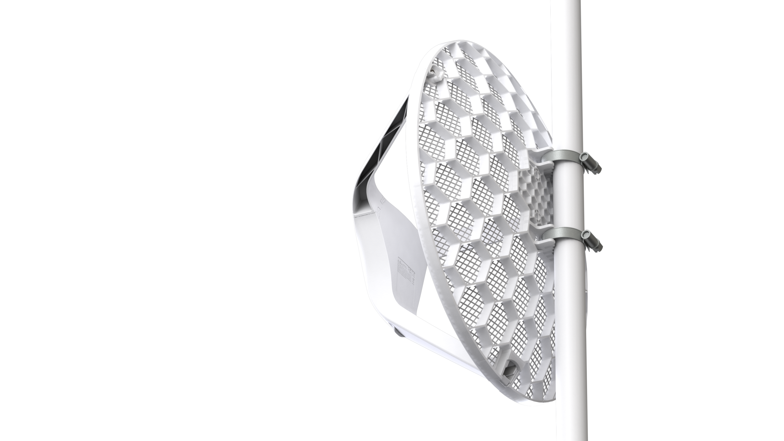 The LHG 5 is a compact and light 5GHz 802.11 a/n wireless device with an integrated dual polarization 24.5 dBi grid antenna at a revolutionary price. It is perfect for point to point links or for use as a CPE at longer distances and supports Nv2 TDMA protocol. The grid design ensures protection against wind, and the fact that the antenna element is built into the wireless unit means no loss on cables. Shipped as a kit of 3 units (RBLHG5kit) – 3 antennas in a single box. We have two versions available. LHG 5-US (USA) is factory locked for 5170-5250MHz and 5725-5835MHz frequencies. This lock can not be removed. LHG 5 (International) supports 5150MHz-5875MHz range (Specific frequency range can be limited by country regulations). Send purchase questions Specifications Support & Downloads Gallery Test results Specifications Details Product code RBLHG-5nD Architecture MIPSBE CPU AR9344 CPU core count 1 CPU nominal frequency 600 MHz Dimensions Ø 391 x 222 mm; package 450 x 450 x 145 mm RouterOS license 3 Operating System RouterOS Size of RAM 64 MB Storage size 16 MB Storage type FLASH MTBF Approximately 100’000 hours at 25C Tested ambient temperature -40°C to 70°C Suggested price $69.00 Powering Details Number of DC inputs 1 (PoE-IN) Max power consumption 6 W Cooling type Passive PoE in Passive PoE PoE in input Voltage 11-30 V Wireless specifications Details Wireless 5 GHz Max data rate 300 Mbit/s Wireless 5 GHz number of chains 2 Wireless 5 GHz standards 802.11a/n Antenna gain dBi for 5 GHz 24.5 Wireless 5 GHz chip model AR9344 Wireless 5 GHz generation Wi-Fi 4 Ethernet Details 10/100 Ethernet ports 1 Certification & Approvals Details Certification CE, FCC, IC, EAC, ROHS IP IP54 Wireless specifications 5 GHz Transmit (dBm) Receive Sensitivity 6MBit/s 25 -96 54MBit/s 20 -80 MCS0 25 -96 MCS7 19 -75 Included parts K-LHG kit 24V 0.38A power adapter PoE injector Metal rings (two) The device has an operating system preinstalled and licensed. No separate purchase is necessary and the product is ready to use. The device includes free software updates for the life of the product or a minimum of 5 years starting from date of purchase.. Related products LHG mount $15 solidMOUNT $29 QMP-LHG $9.5