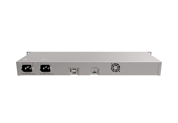 Key Features New RB1100AHx4 Dude Edition has Annapurna Alpine AL21400 CPU with four Cortex A15 cores clocked at 1.4GHz each, for a maximum throughput of up to 7.5Gbps. The device supports IPsec hardware acceleration and is faster at it than any previous RouterBOARD device (up to 2.2Gbps with AES128). Unit comes with 1U rackmount case, 13x Gigabit Ethernet ports, RS232 serial port and dual redundant power supplies (with -48v DC telecom power and 802.3at/af support). The RB1100AHx4 Dude edition features several high speed storage connectors (two SATA and two M.2) for using a Dude database, proxy cache or any other storage intensive feature. It includes a 60GB M.2 drive already installed. 1 year limited warranty