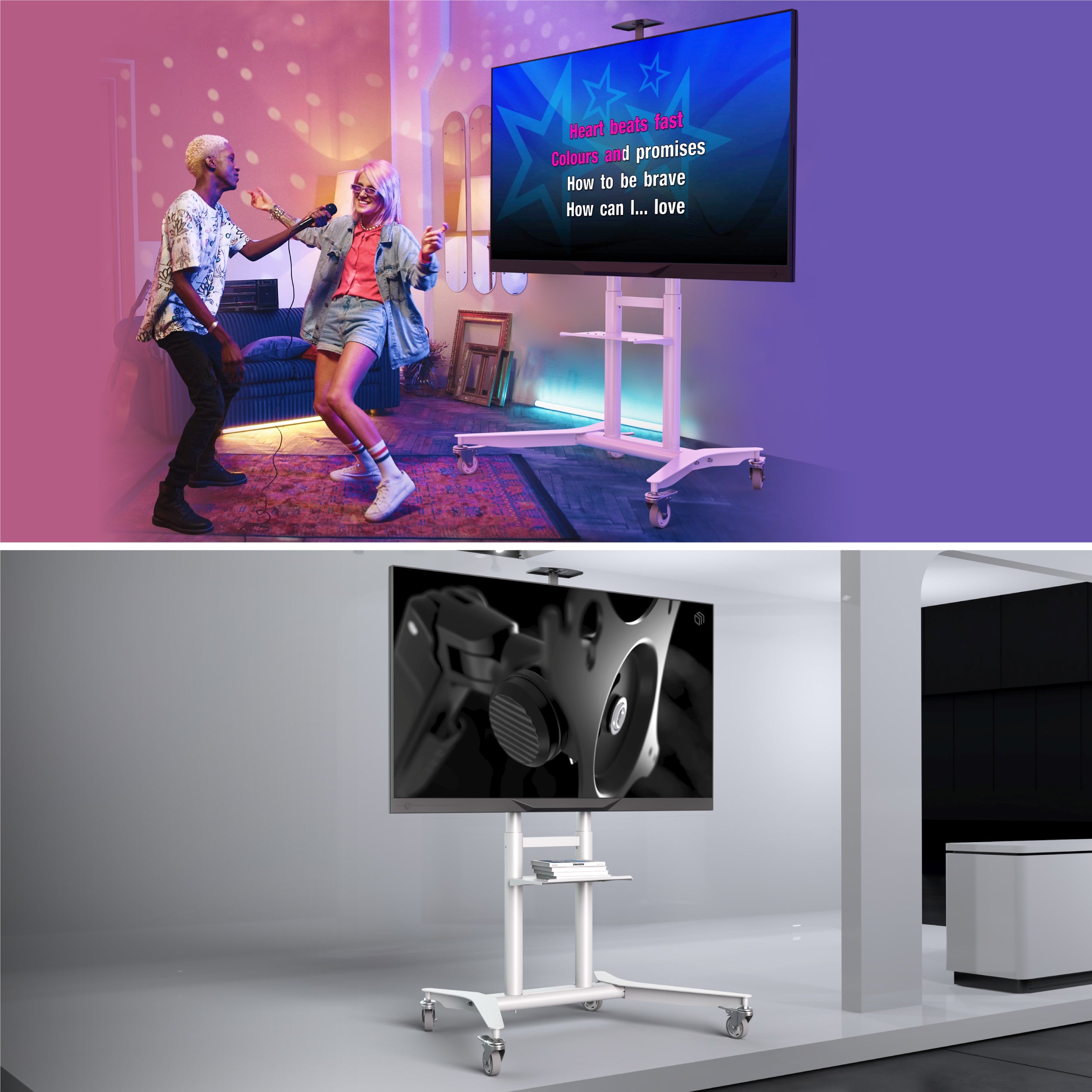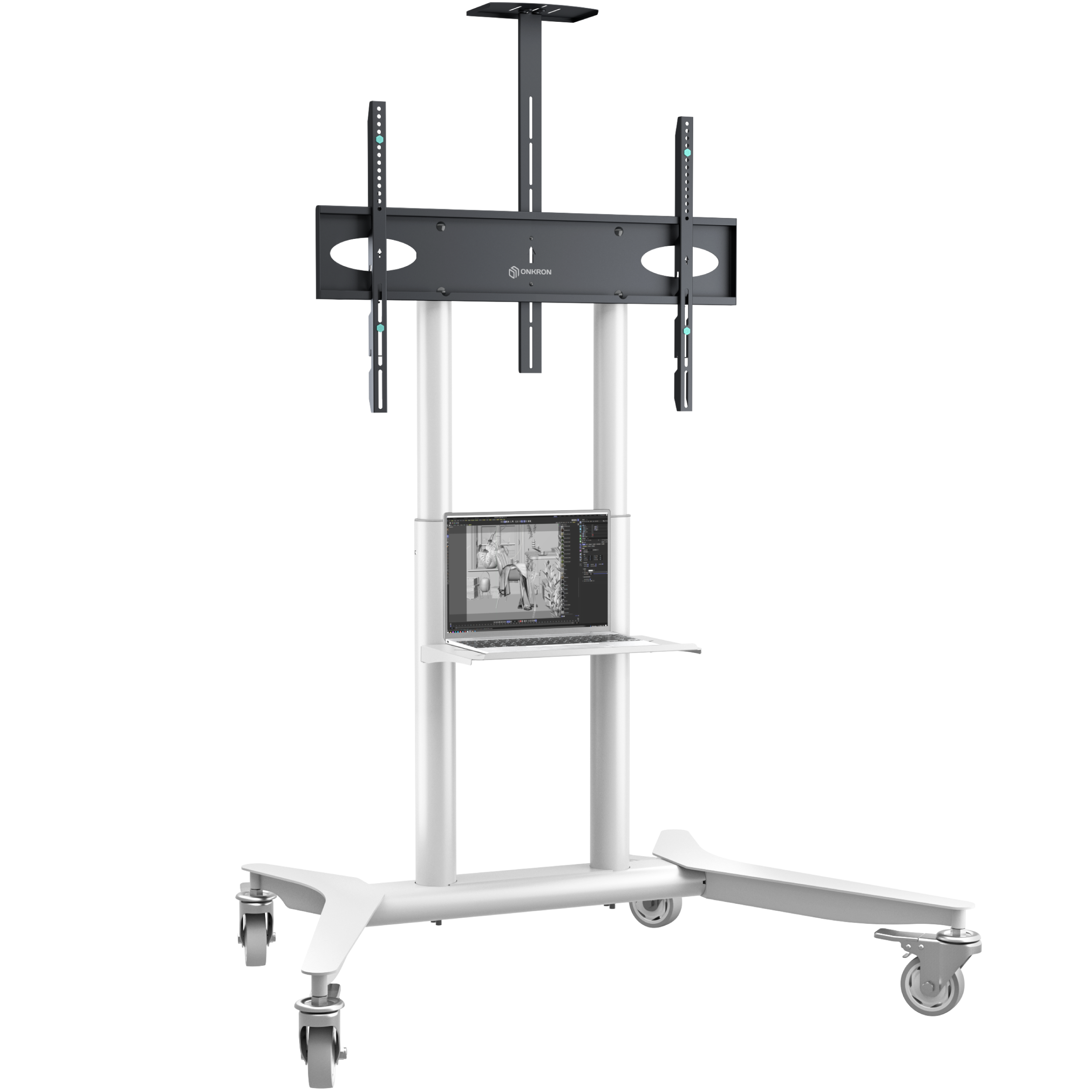 Mobile TV stand for TVs 55″-90″, max 198 lbs, white TS1871